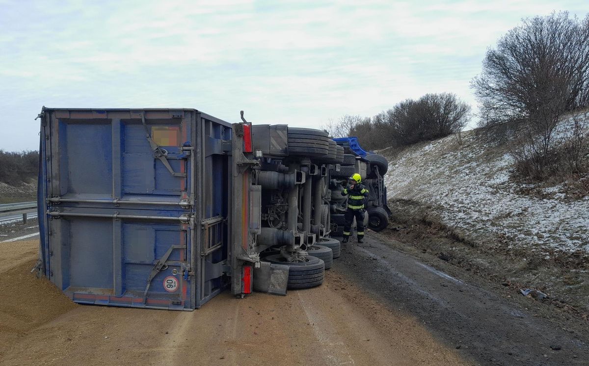 Dálnice D7 u Brandýsku směr Praha je kompletně uzavřena. Na patnáctém kilometru došlo k převrácení nákladního vozidla se sypkým materiálem. Náklad je rozsypán přes oba jízdní pruhy ve směru do Prahy a částečně v opačném směru.