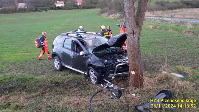 Vážná dopravní nehoda se stala dnes mezi obcemi Vochov a Kozolupy na Plzeňsku. Osobní automobil narazil do stromu a následně začal hořet. Díky rychlému zásahu svědka a hasičů se podařilo požár uhasit a zachránit dva zraněné cestující.